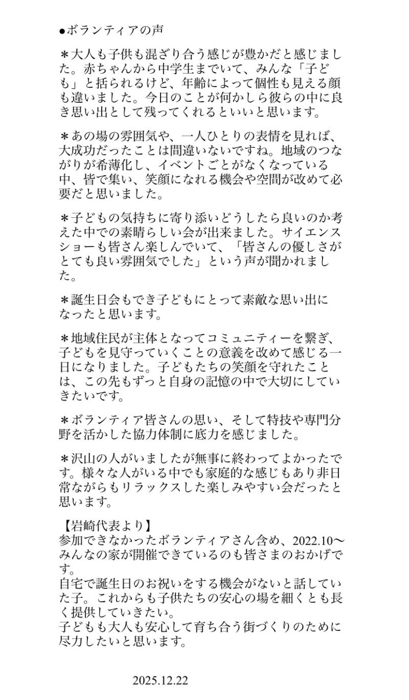 支えてくださった全てのボランティアさんと地域の方々に、心から感謝申し上げます。🏡